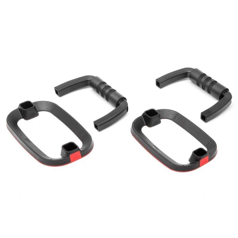 Avuç içi için rahat bir tutuş sağlayan köpük kaplı tutacaklar , parmaklar için ergonomik olarak yerleştirilen kabartmalı üç çizgiye sahiptir. Şınav çekiş sırasında elinizin duruşunun kalıbını alır. Dayanıklı “A” çerçeve yapısı güç ve sabitlik sağlarken, kauçuk kaplı alt yüzey düz zeminlerde şınav çekmek için uygundur.