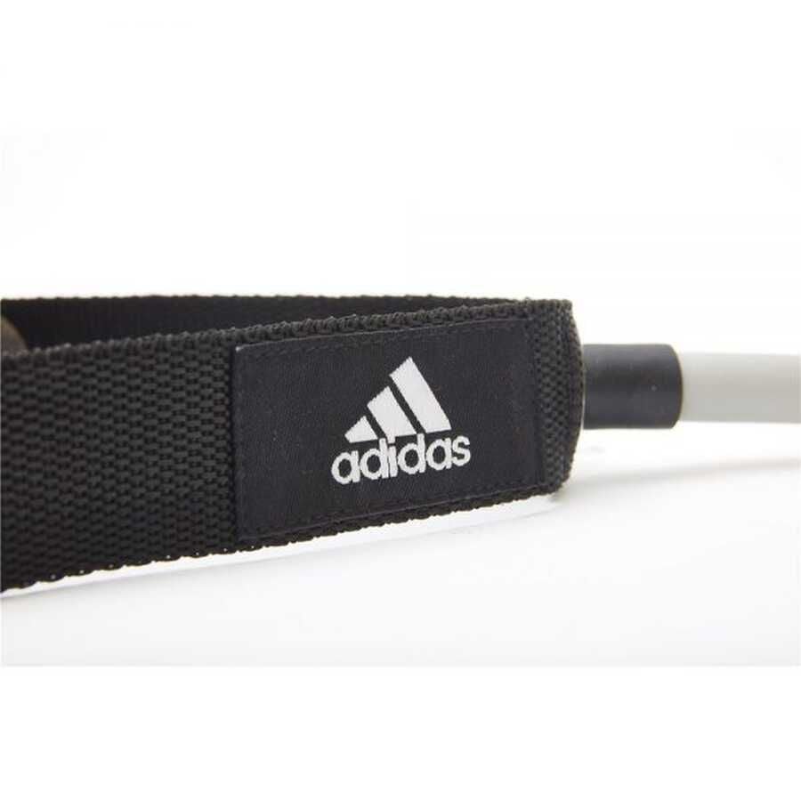 Rahat tutuşlarla donatılmış adidas fitness lastiği, antrenmanlarınız sırasında vücudunuzun daha güçlü, daha esnek ve formda olmasına yardımcı olur. Üst ve alt vücut eğitimi için uygundur. Çok çeşitli egzersizler yapmanızı sağlar, bu nedenle kuvvetlendirme egzersizlerinin yanı sıra esneme için de faydalı olacaktır. Kauçuğun kullanımı çok geniştir. Ana görevi, üstesinden gelinmesi gereken bir direnç yaratmaktır. Bu nedenle karın kaslarını, kolları, sırtı ve bacakları güçlendirmek için antrenmanlarda çok işe yarar.