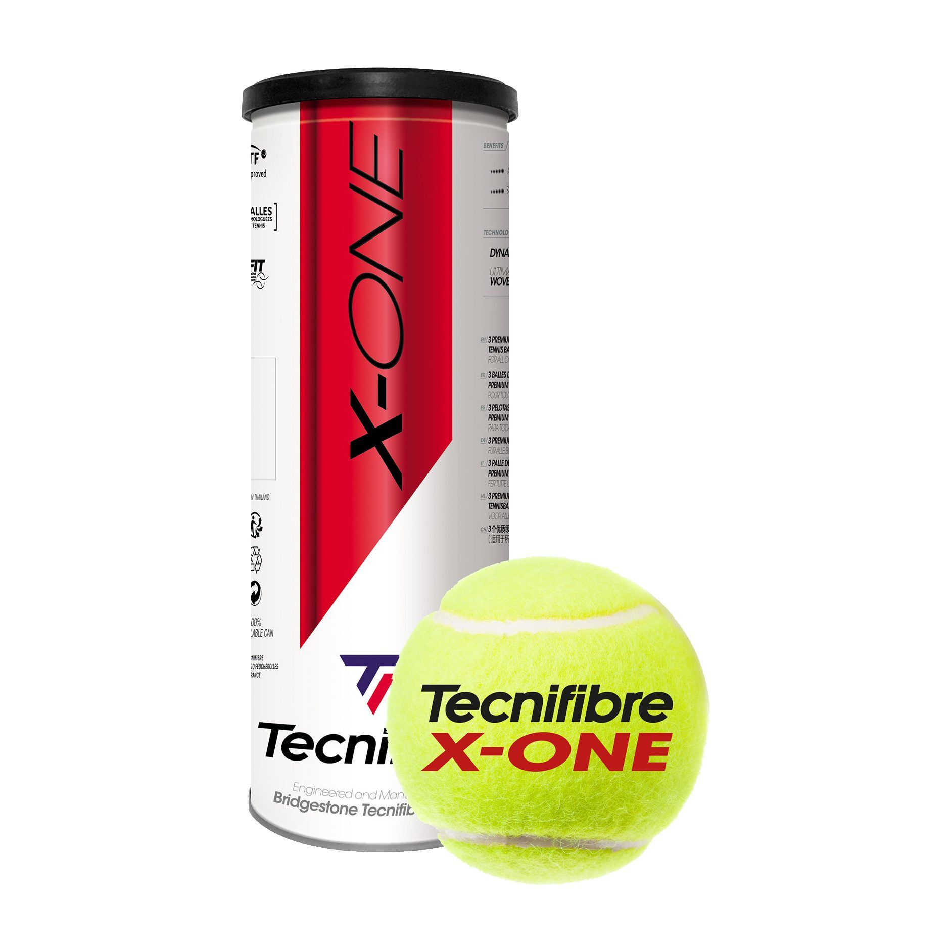 X-One topu, basınçlı yarışma topudur. X-One, uzun ömürlü, canlı, hızlı, yüksek performanslı bir toptur. X D-Core teknolojisi ile donatılmıştır. Tecnifibre'den X D-Core, oyun sırasında topun deformasyonunu %20 oranında azaltan devrim niteliğinde bir teknolojidir. Bu yenilik, çekirdeğin ilk şeklini daha uzun oyun süresi boyunca korumasını sağlar dolayısıyla aynı hisleri uyandırır. Aynı oynama tarzıyla daha uzun süre oynamanıza olanak sağlar. Rekabetçi oyuncuların seçimidir. Marsilya ve Rotterdam'daki ATP turnuvalarında kullanılan bu top, ileri seviyedeki maçlar için tasarlanmıştır.